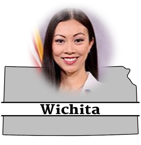 Lily Wu (age 41, born in 1984, in Guatemala) won 57.6% of votes in November 2023 to become the 103rd mayor of Wichita, Kansas. Though the mayor’s office is nonpartisan, Wu—a former Republican—ran as a Libertarian. She is the first Asian American to serve as mayor of Wichita and of any city in Kansas.